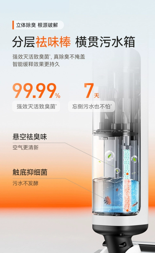 污水箱與清水箱均內(nèi)置深度祛味棒,能持續(xù)吸附水箱內(nèi)的異味分子,即使長時(shí)間未清理,也不會(huì)出現(xiàn)"酸臭"問題。